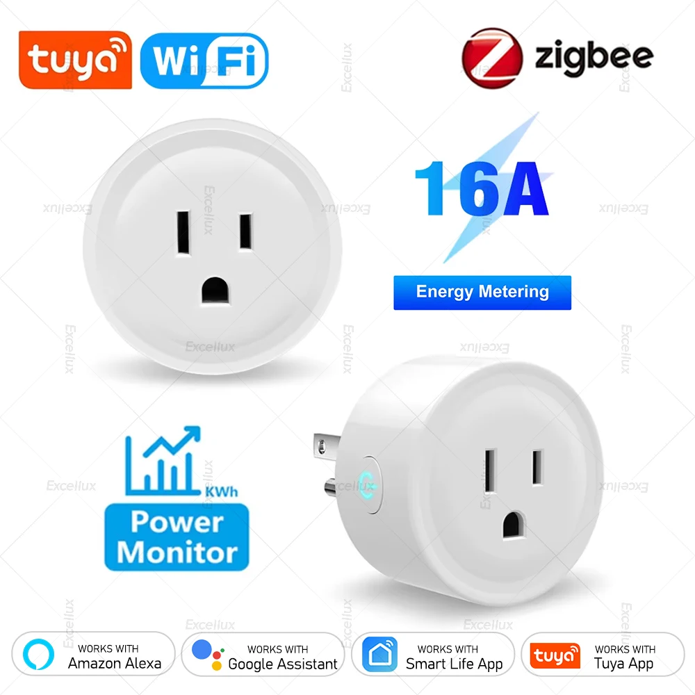 16A Tuya Smart WiFi/Zigbee Socket US Plug With Power Monitoring Timing Function WiFi Outlets Works With Alexa Home Assistant Z2M